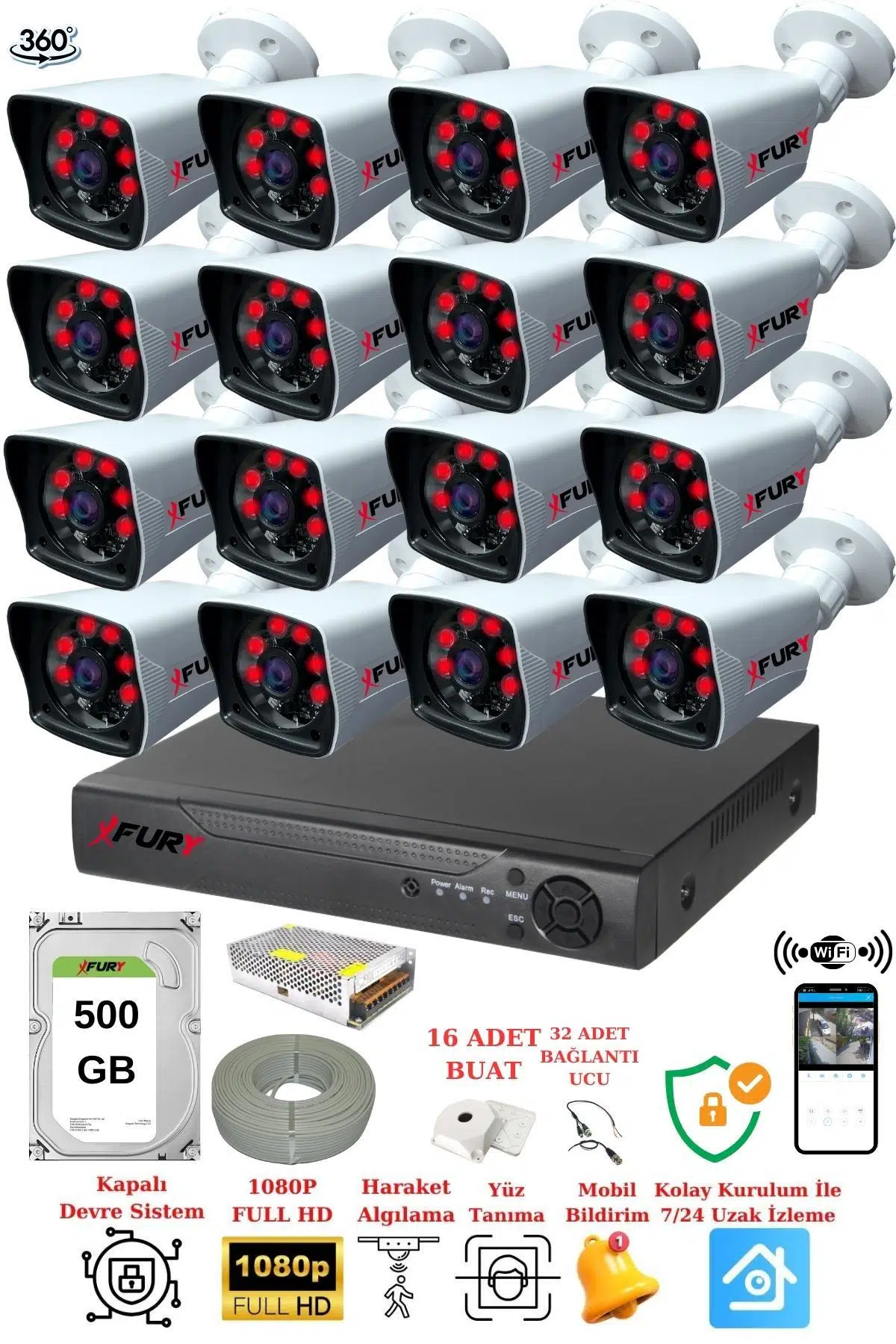| Etiketler | FURY 16 Kameralı 5mp Lensli 1080P 2mp Görüntü 6 Atom Gece Görüşlü FullHd Güvenlik Kamerası 5525A 500GB |