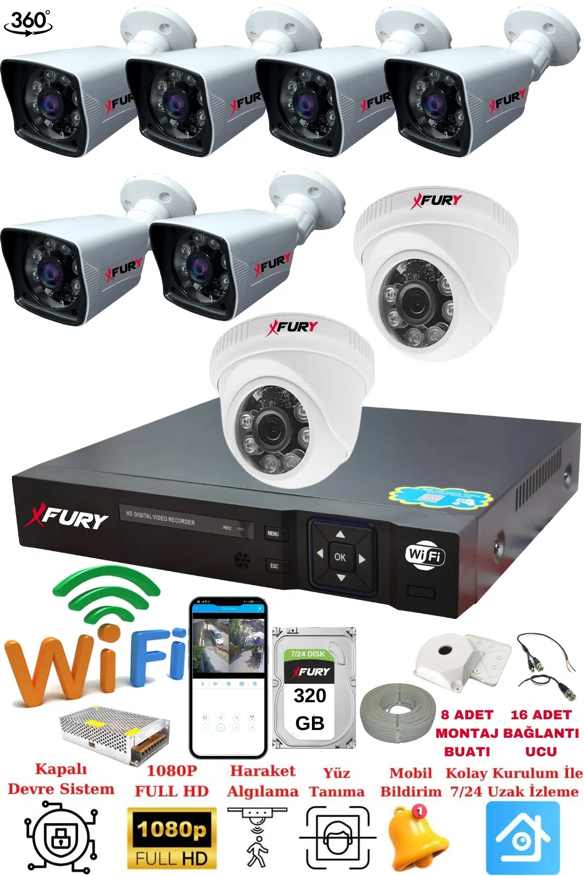 | Etiketler | FURY 2 İç 6 Dış Kameralı 5mp Lens 2mp Görüntü Gece Görüşlü Full Hd Güvenlik Kamerası 14125525 320 GB |