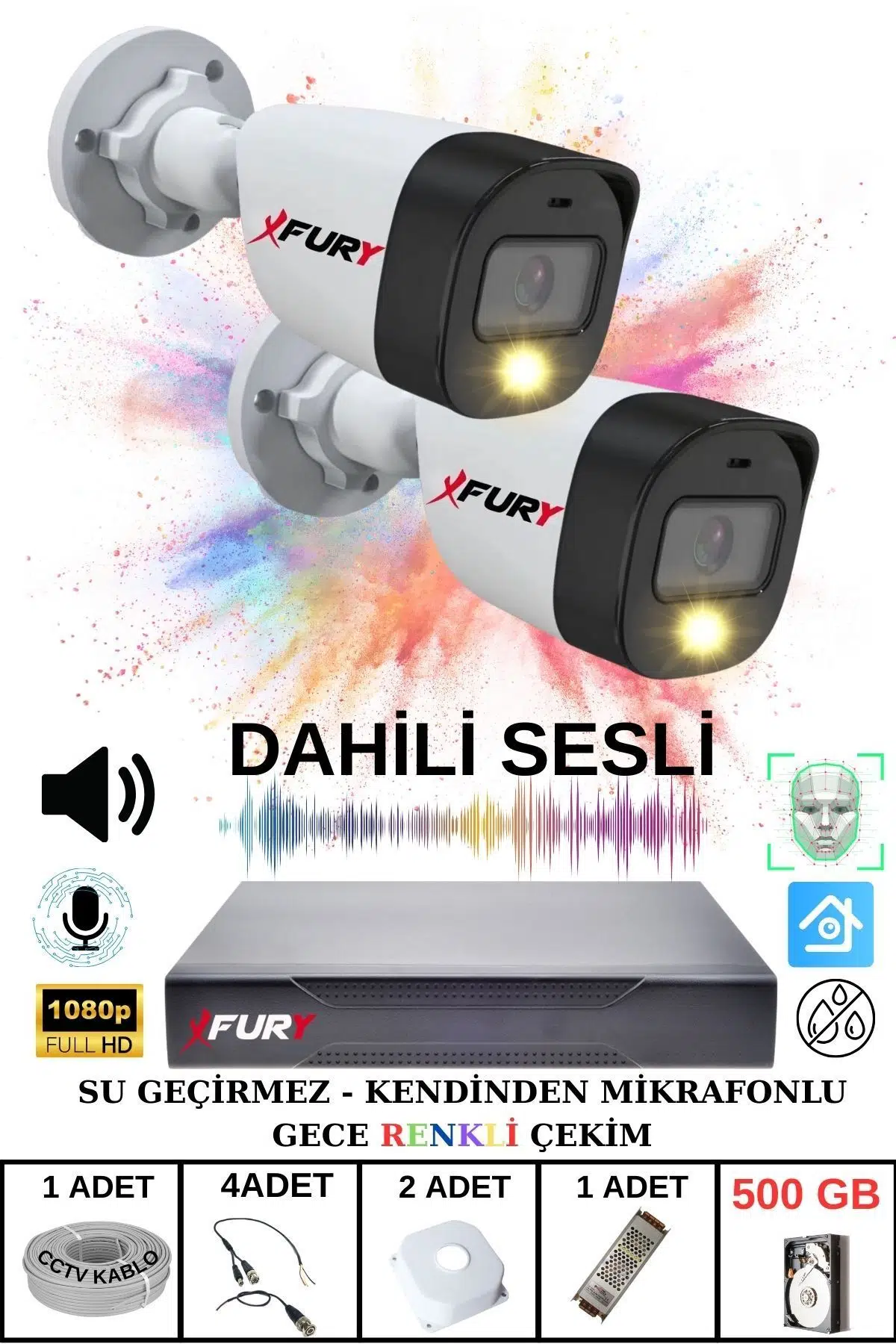 | Etiketler | FURY 2 li Sesli Gece Renkli Görüş Güvenlik Kamerası Su Geçirmez Güvenlik Kamerası Seti 500GB |