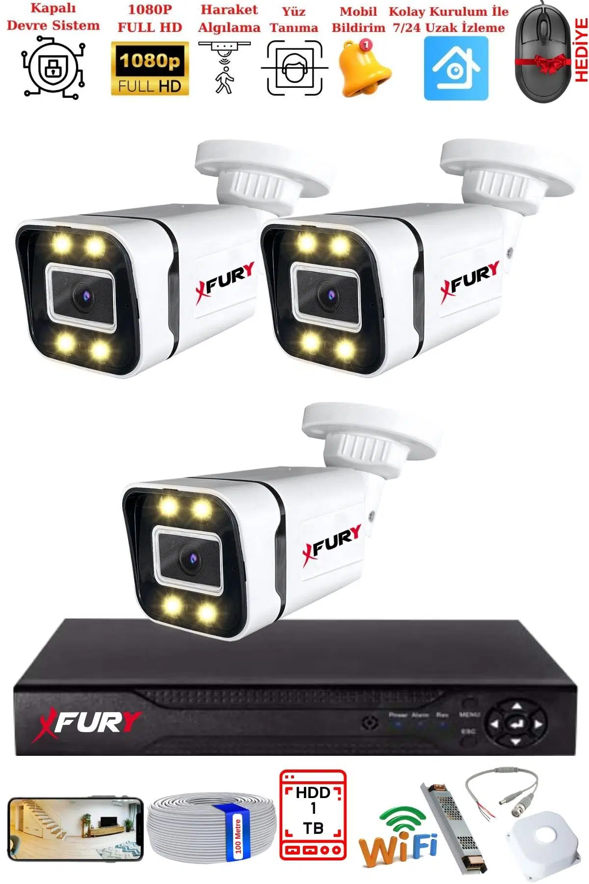 | Etiketler | FURY 3 Kameralı 1080P Görüntü Gece Renkli Full Hd 4 x Ultra Led Gece Renkli Güvenlik Kamerası Seti 1TB |