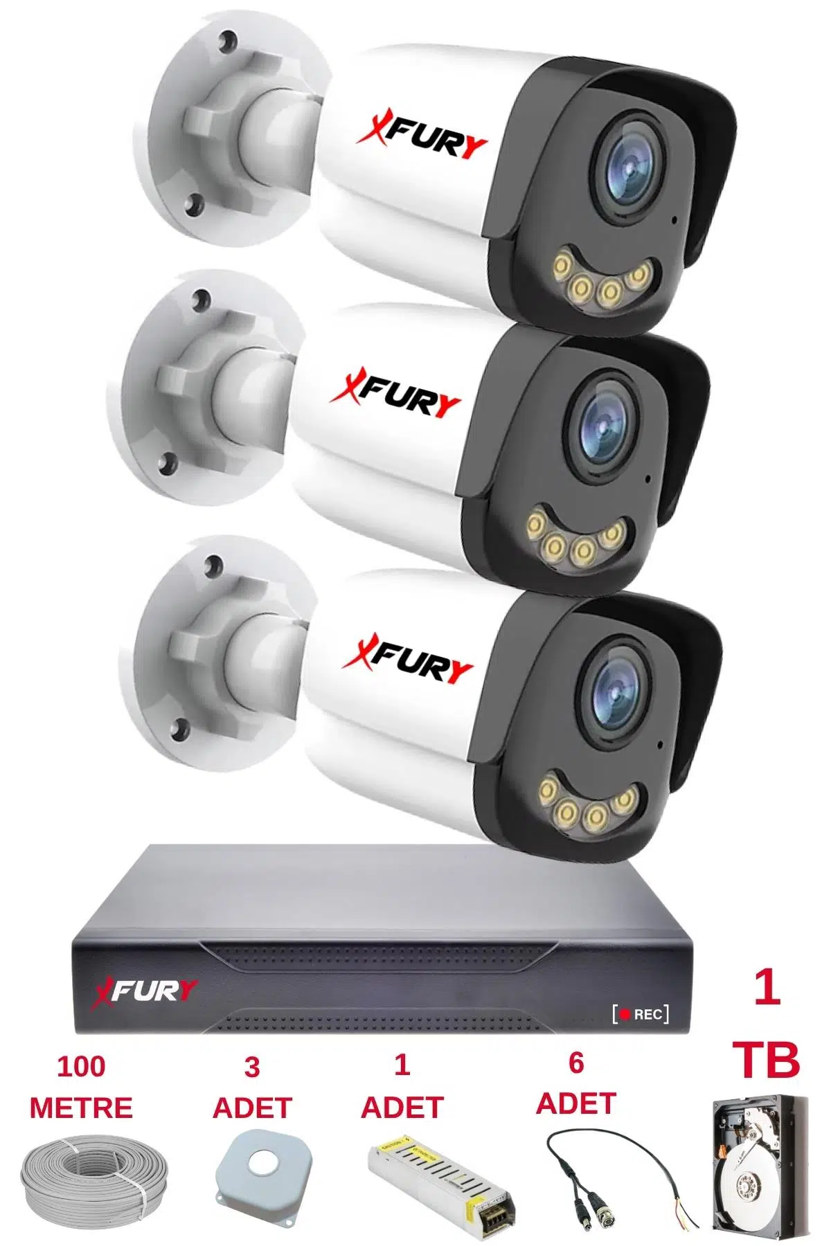 3 Adet FURY Gece Renkli - Full HD Ahd Güvenlik Kamerası Renkli Gece Görüş 5590