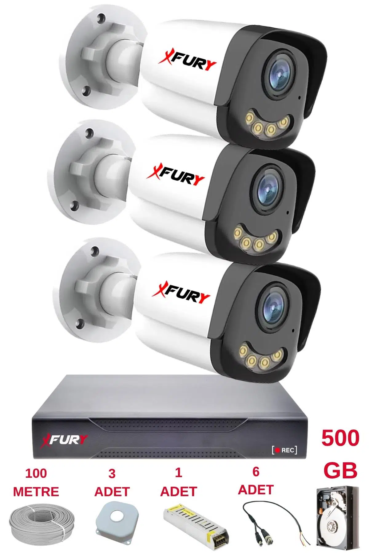 | Etiketler | FURY 3 Kameralı 4 Warm Led Gece Renkli Görüş-Cepten İzle-Su Geçirmez Güvenlik Kamerası Seti 500GB |