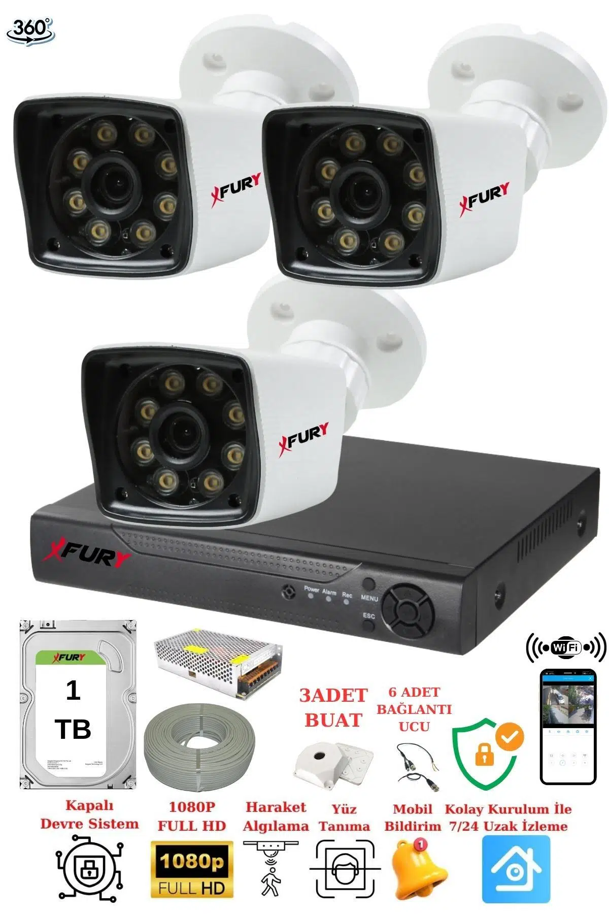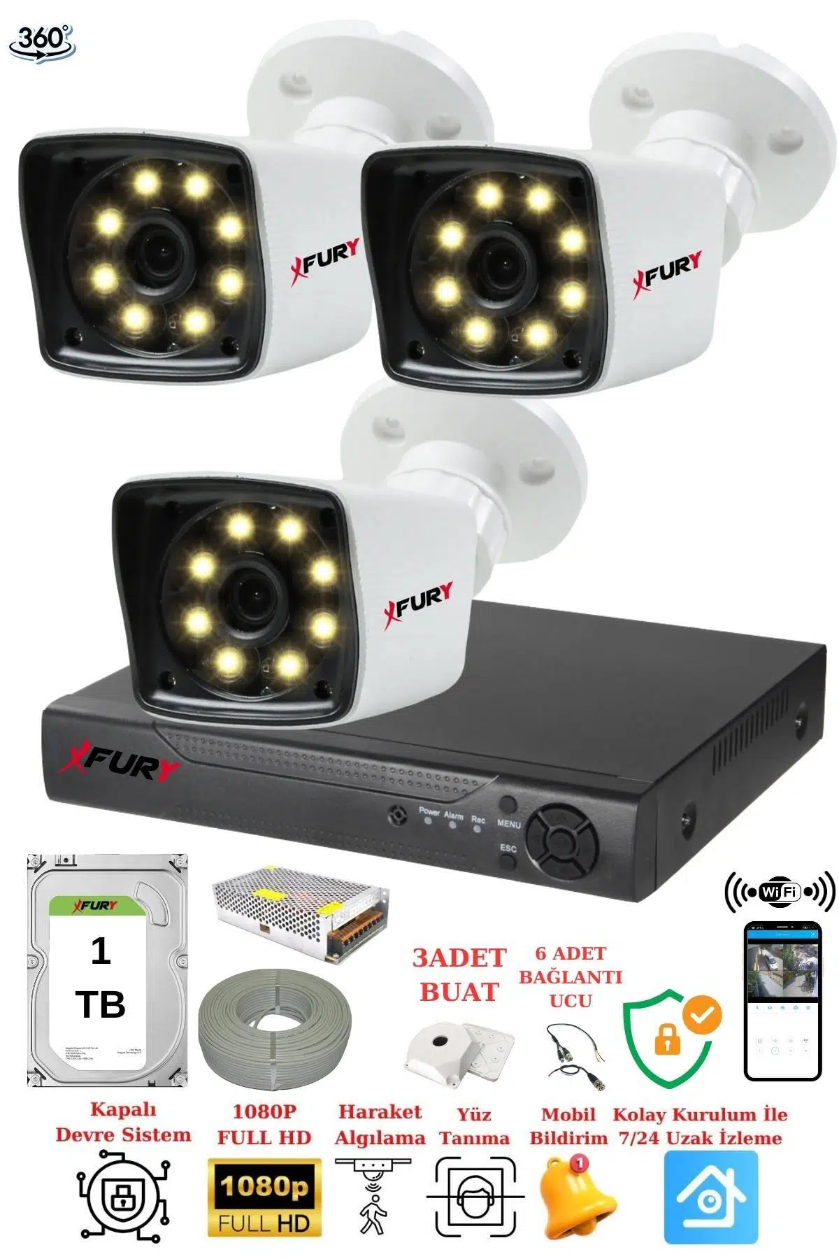 | Etiketler | FURY 3 Kameralı 5mp Lens 1080p 2mp Color Görüntü 8 Warm Led Gece Görüş FullHd Güvenlik Kamera 5525W 1TB |