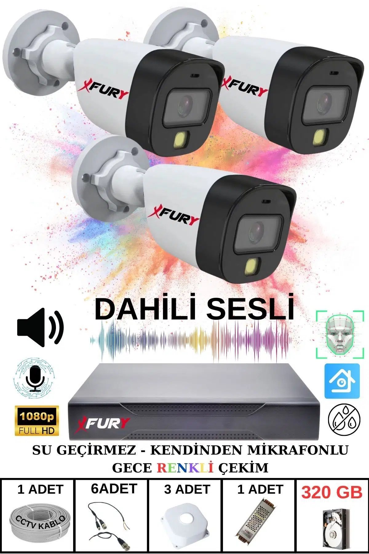 3 Adet FURY SESLİ Gece Renkli - 5mp Lens 1080p Full HD Ahd Güvenlik Kamerası Ultra Led Renkli Gece Görüş SESLİ