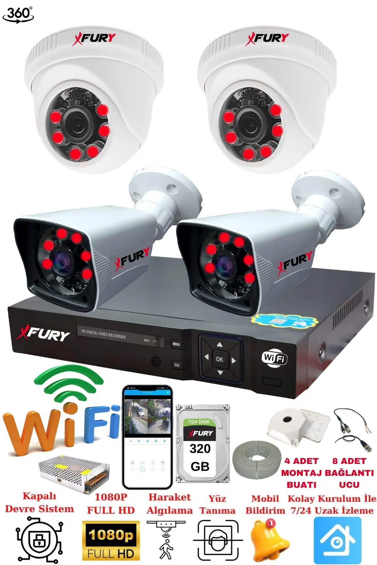 | Etiketler | FURY 4 Kameralı 5mp 3.6mm Lens 2mp Görüntü 6 Atom Led Gece Görüşlü FullHd Güvenlik Kamerası 251412 320 GB |