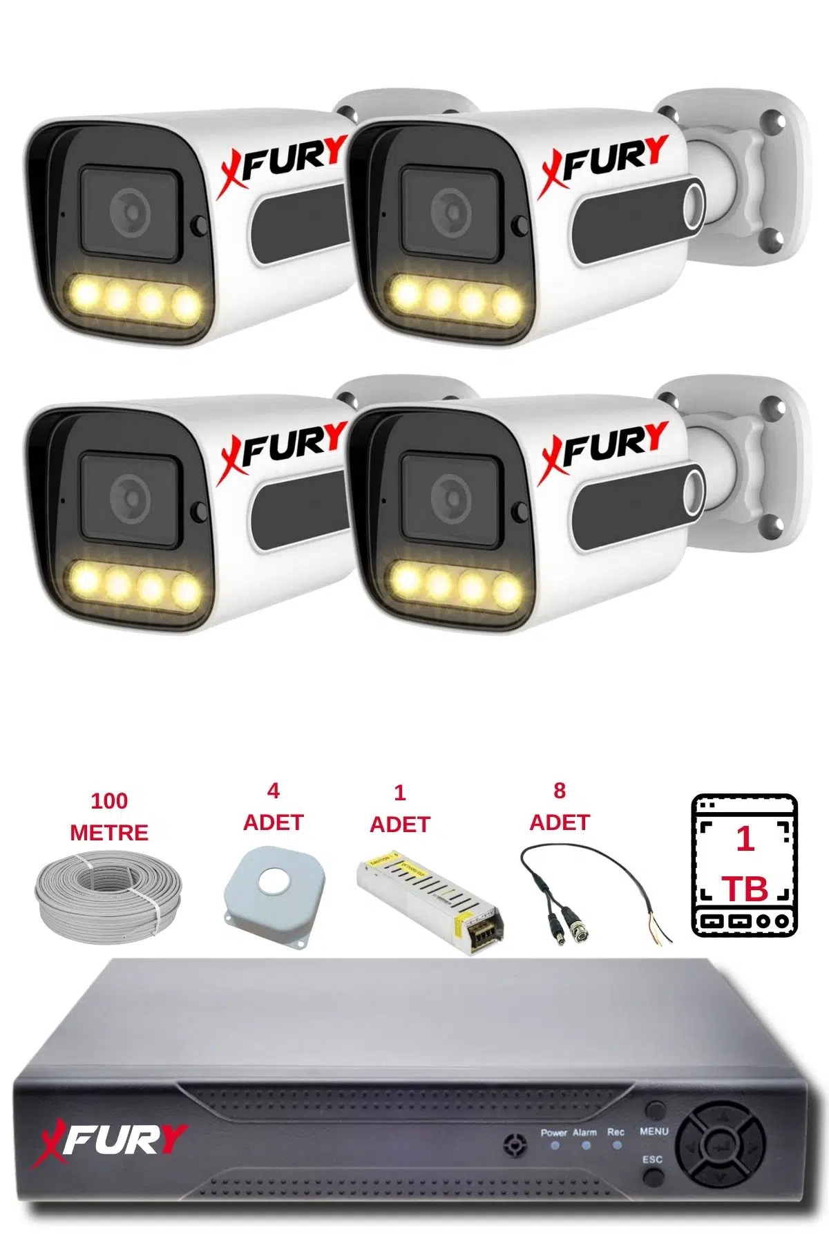 4 Adet FURY Gece Renkli - Full HD Ahd Güvenlik Kamerası Renkli Gece Görüş 5500