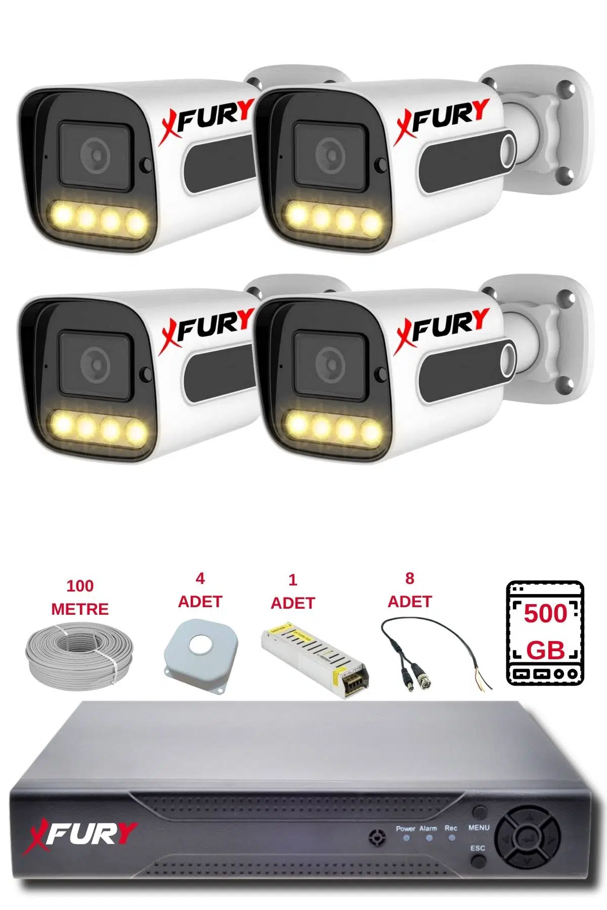 4 Adet FURY Gece Renkli - Full HD Ahd Güvenlik Kamerası Renkli Gece Görüş 5500