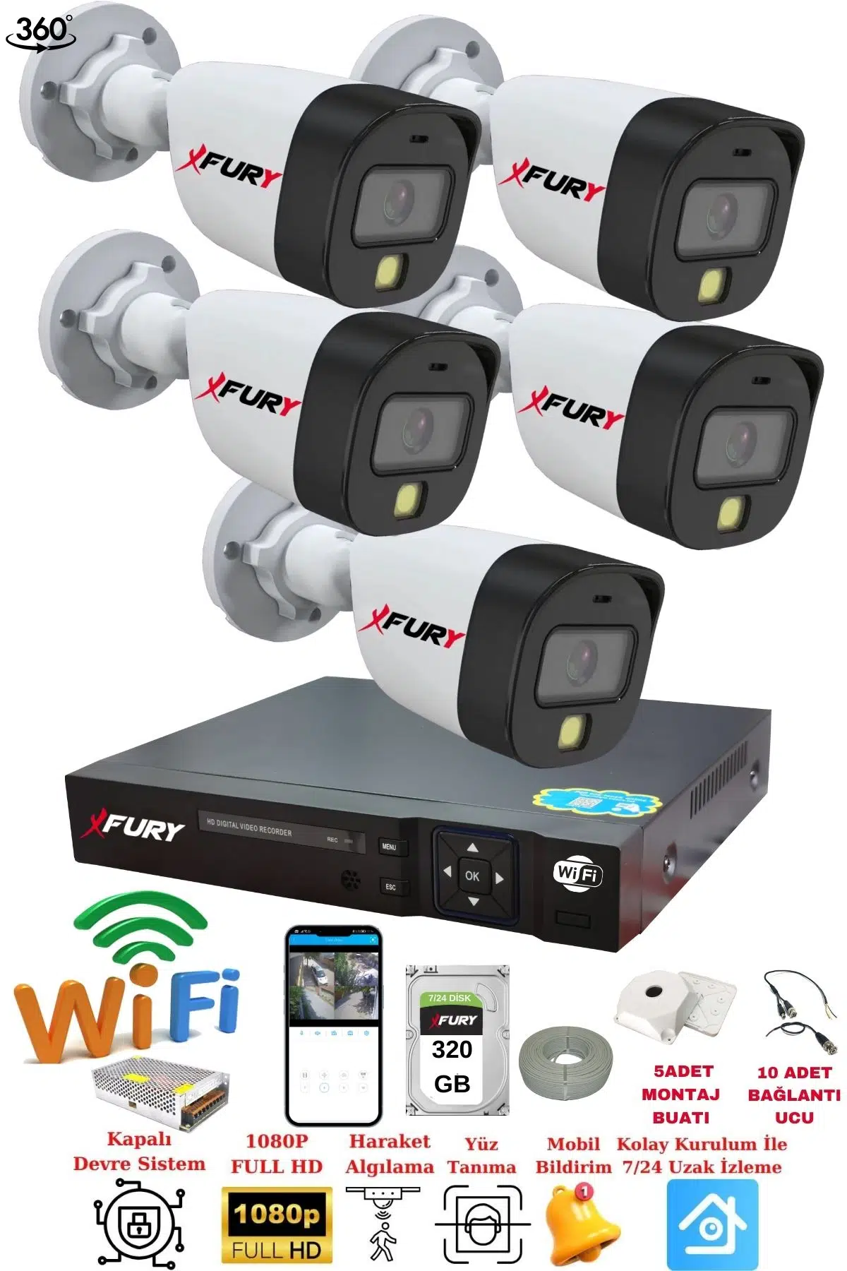 | Etiketler | FURY 5 Kameralı Gece Renkli 1080P 2Mp Görüntü Full Hd Ultra Led Gece Renkli Güvenlik Kamerası Seti 320GB |