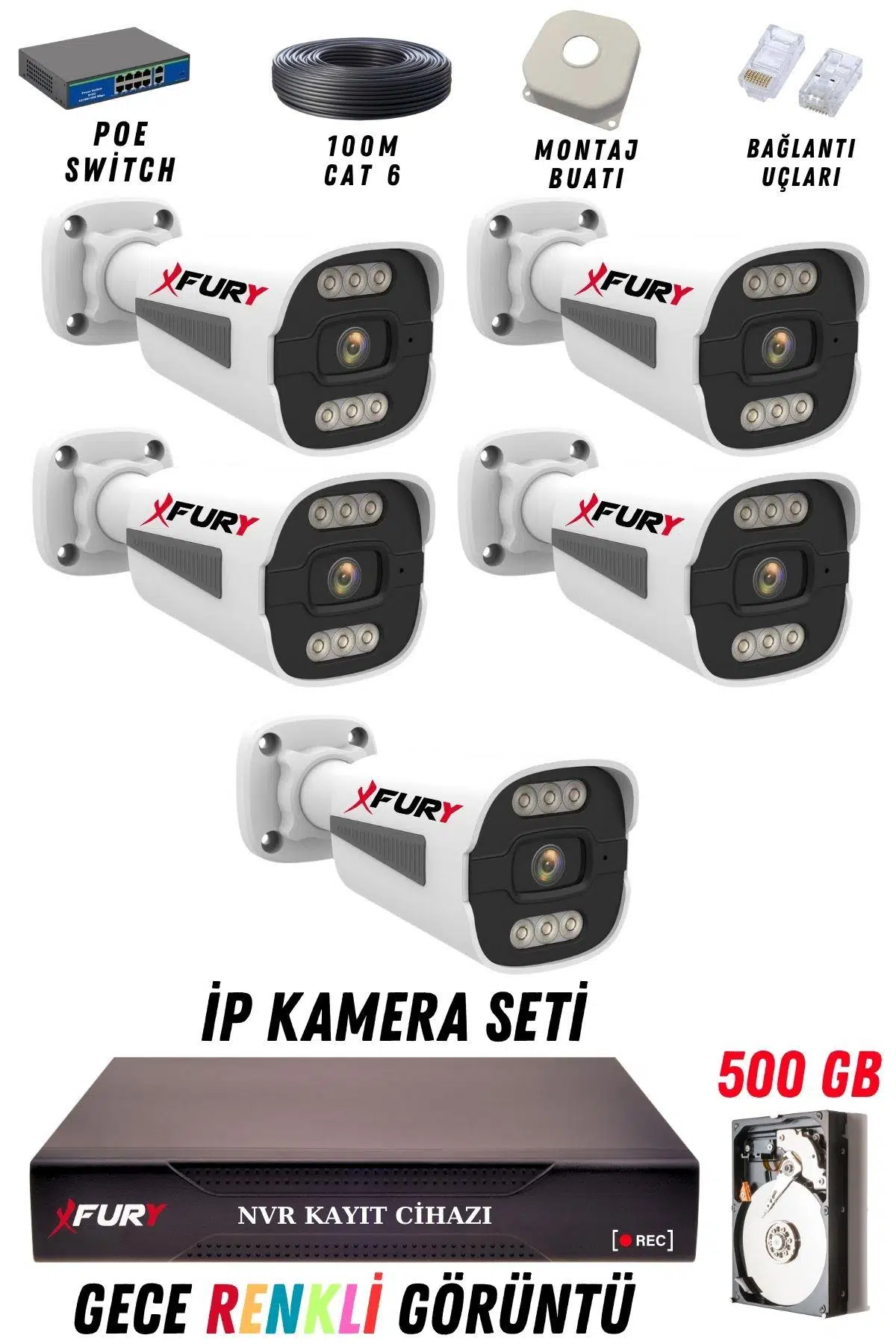 | Etiketler | FURY 5 Kameralı Ip Güvenlik Kamerası Seti 4mp Gece Renkli Su Geçirmez 1506 500GB |
