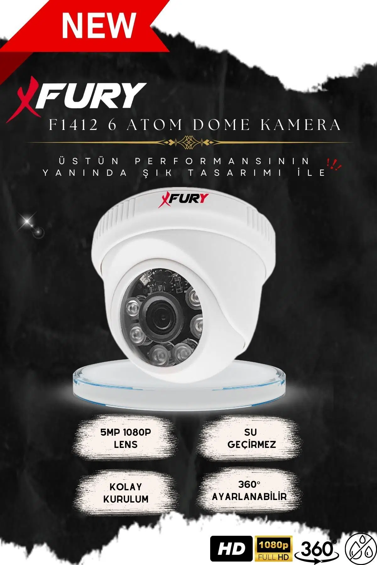 Fury 5mp 3.6mm Lensli 1080P 2mp Görüntü 6 Atom LedGece Görüşlü Full Hd Güvenlik Kamerası 1412A