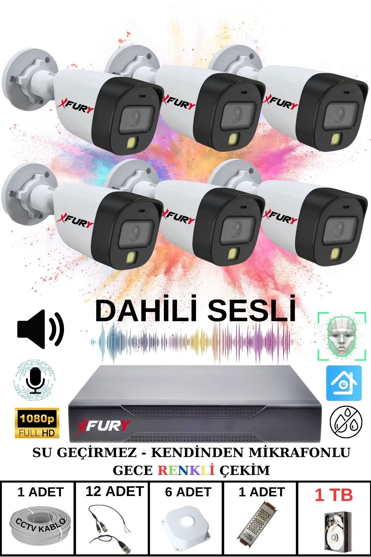 6 Adet FURY SESLİ Gece Renkli - 5mp Lens 1080p Full HD Ahd Güvenlik Kamerası Ultra Led Renkli Gece Görüş SESLİ