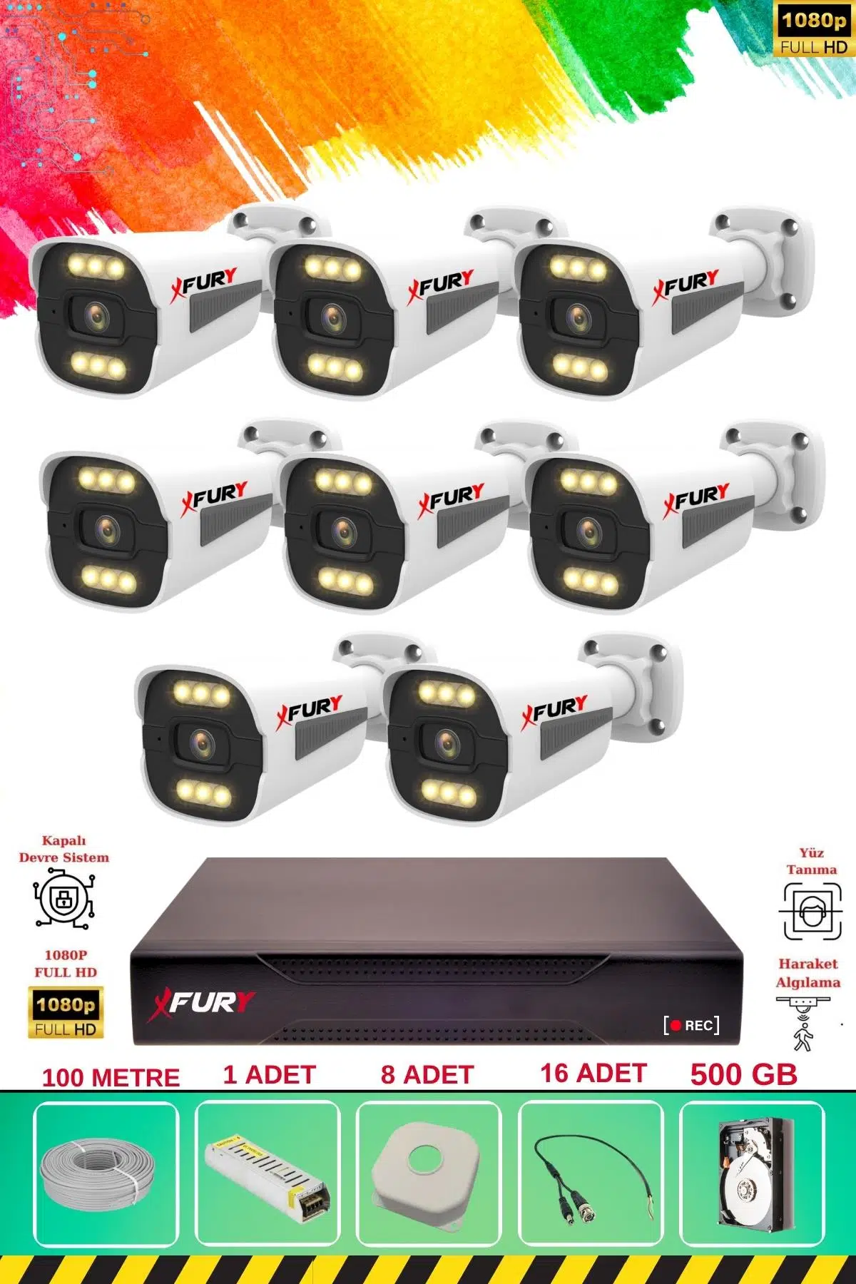 | Etiketler | FURY 8 Kameralı 6 Warm Led Gece Renkli Görüş-Cepten İzle-Su Geçirmez Güvenlik Kamerası Seti 500GB |