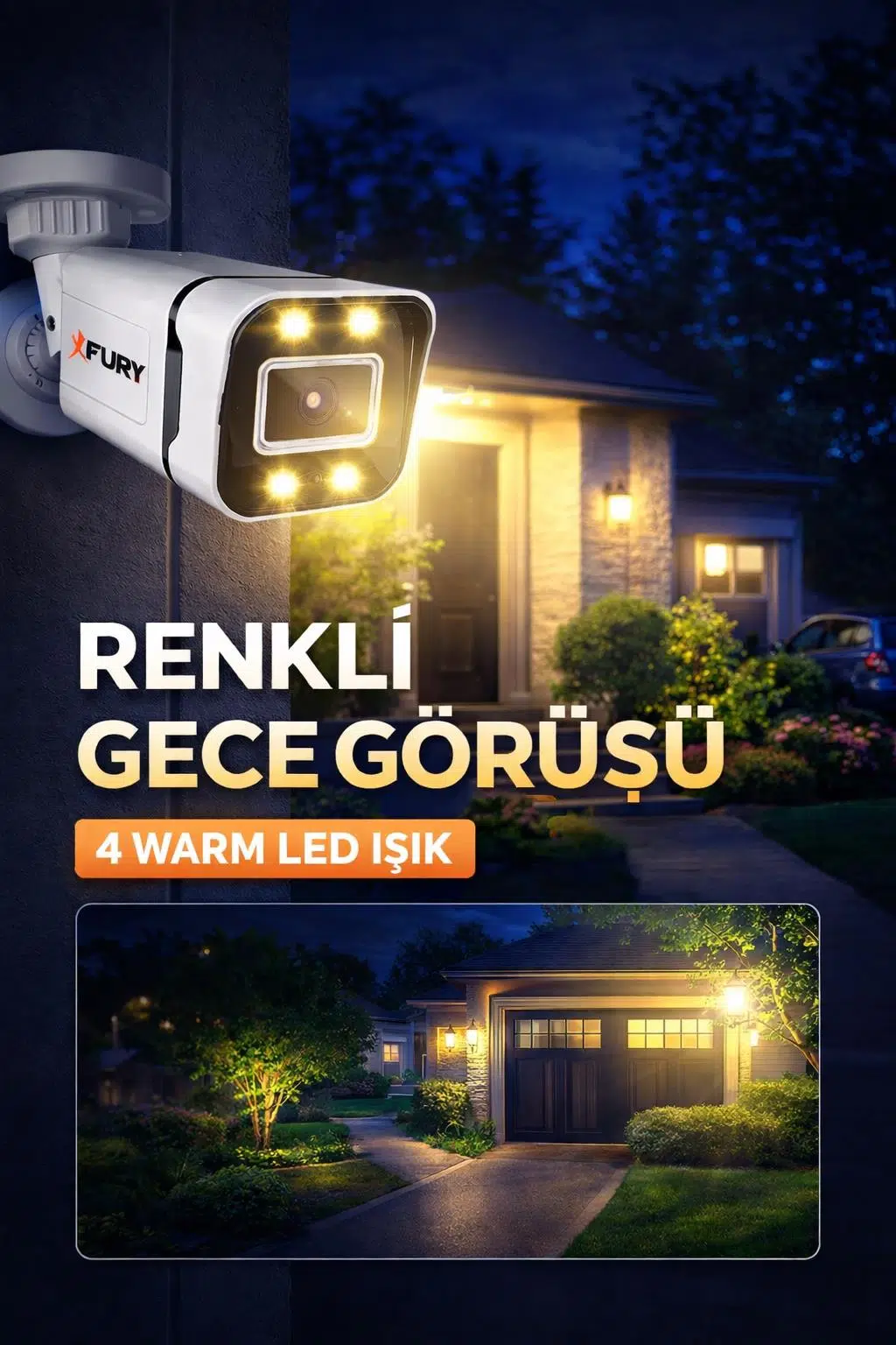 4 adet güçlü warm LED ışık sayesinde gece karanlığında bile renkli ve net görüntü sağlar. Siyah beyaz yerine detayları renkli olarak görebilirsiniz.